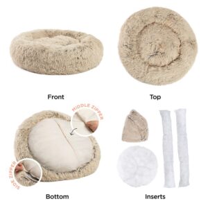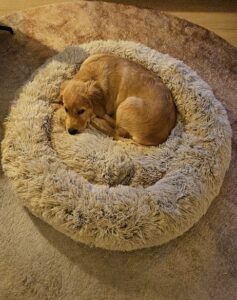 Kalmerende premium Donut bedden, voorzien van AirLOFT vezels die de vorm van de mand tot maar liefst 3x langer vasthouden dan andere materialen. De lange AirLOFT vezels zorgen voor superzacht, fluffy materiaal, meer ondersteuning en een groter comfort. Ideaal voor honden en katten die zich graag oprollen in de mand. De verhoogde rand biedt ondersteuning en comfort aan hoofd en nek en geeft een gevoel van veiligheid aan je huisdier. Het huisdier kan heerlijk graven in de diepere spleten van het hoogpolige materiaal, waarna ze zich heerlijk kunnen oprollen en gaan genieten van hun rust en slaap. De superzachte bodem verlicht spier- en gewrichtspijn. Onze Teddy vind de Airloft heerlijk en slaapt er heel veel in, op de laatste foto te zien toen hij 4 mnd was..