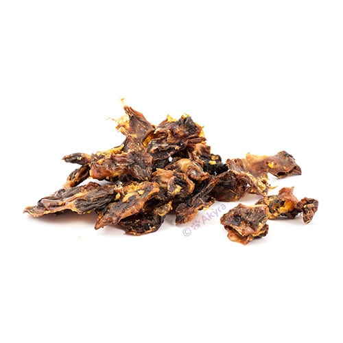 Gedroogde kippenmaagjes, ze zijn niet zo groot dus ook geschikt als trainingssnoepje voor de grotere honden. Ze ruiken sterk en zijn daardoor vaak extra geliefd! Ook geschikt voor kleine honden. Op lage temperatuur gedroogd zodat voedingsstoffen goed bewaard blijven. Akyra hondensnacks zijn 100% natuurlijk en vrij van kunstmatige toevoegingen.