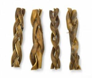 Canis Purus Kameelhuid – Gevlochten is een taaie snack gemaakt van lange smalle lapjes kamelenhuid. Kameel wordt vaak ingezet als hypoallergene kauwsnack bij honden met allergiën/intoleranties.