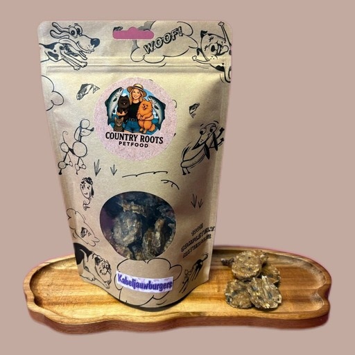 Samenstelling: kalkoen (85 %), wild (5 %), plantaardige glycerine, zwarte bessen (0,5 %), natriumchloride.
