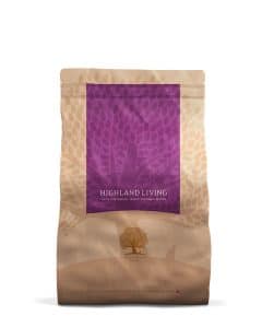 De Highland Living is een complete en unieke, graanvrije hondenbrok geïnspireerd op de Schotse hooglanden. Deze hondenvoeding is bereid met heerlijke en gezonde smaken uit de Schotse Hooglanden, zoals Norfolk Black kalkoen, Aberdeen Angus beef, wilde vogels zoals duif en patrijs en natuurlijk Schotse zalm. Highland Living is gemaakt van 79% verse en gedroogde kalkoen, rund, zalm en verse eieren. Hiervan is 43 % vers vlees, vis en eieren (als % van het totale recept). Groenten, zaden, kruiden, bessen, fruit, vitaminen en mineralen 21%.