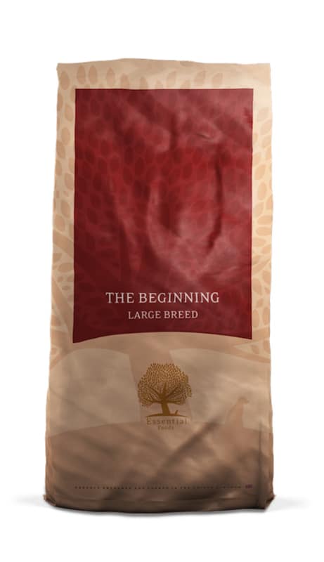 Essential Foods The beginning Large Breed is specifiek ontwikkeld voor pups en jonge honden die als volwassen hond meer dan 15 kg gaan wegen. Essential Foods The beginning is bereid met 74% verse en gedroogde scharrelkip en vrij lopende eenden, verantwoord gekweekte zalm en Salisbury regenboogforel, en ei. Hiervan is 48 % vers vlees en verse eieren (als % van het totale recept). Aangevuld met 26 % Groenten, zaden, kruiden, bessen, fruit, vitaminen en mineralen.