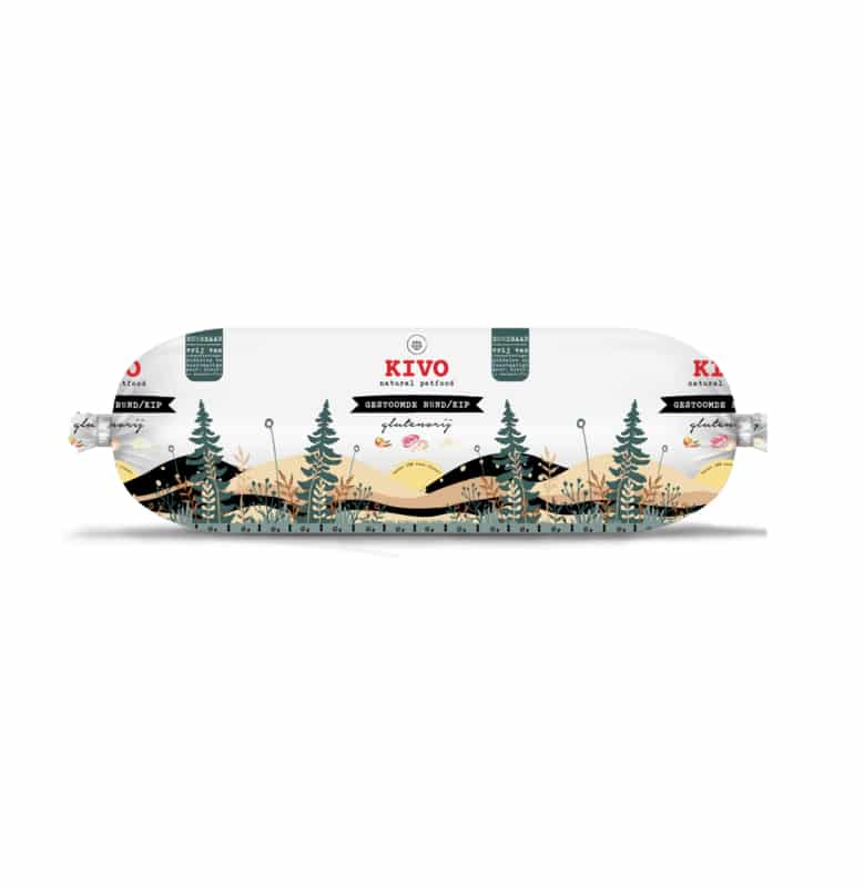 Naast de verse vleesvoedingen heeft Kivo ook deze gestoomde complete voedingen. Ze zijn houdbaar buiten de koelkast/vriezer en dus erg makkelijk mee te nemen tijdens je vakantie. Ook handig als je vergeten bent een diepvries rol uit de vriezer te halen of tijdens de training door ze in kleine blokjes te snijden. De gestoomde Kivo voedingen bestaan uit een hoog vleespercentage 80%, aangevuld met zilvervliesrijst, groenten, fruit en vitaminen & mineralen. De voedingen zijn geschikt voor zowel pups als volwassen honden.