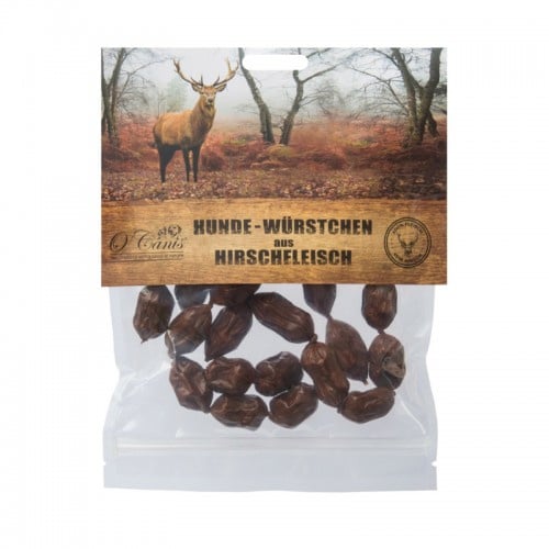 Deze harde kleine worstjes van O'Canis zijn een heerlijk tussendoortje of beloning tijdens de hondentraining. Gemaakt van één enkele diersoort en daardoor ook uitstekend geschikt voor honden met allergieën of intolleranties. Deze worstjes zijn ongeveer 2,5 cm groot en zijn per 100 gram verpakt.